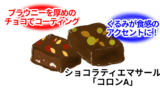 カリカリとした食感の「クロッカン」というフランス菓子をモチーフにし、表面はチョコレートでコーティング、上からパチパチと弾けるキャンディとカカオニブを振りかけました。カリカリパチパチが一度に楽しめる、まるで『新食感』なお菓子です。